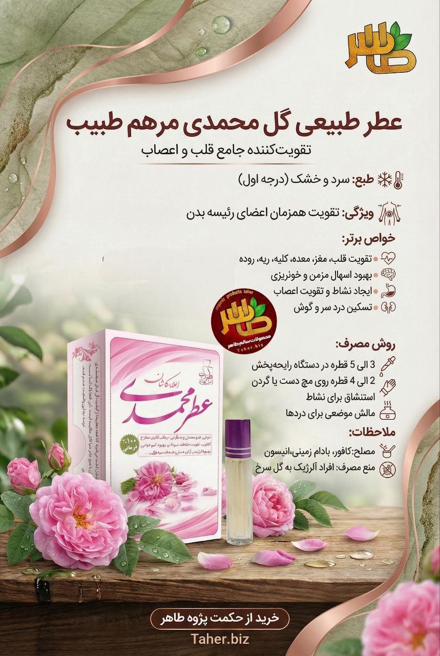 عطر طبیعی گل محمدی مرهم طبیب : عطر درمانی مقوی قلب و نشاطآور ارواح